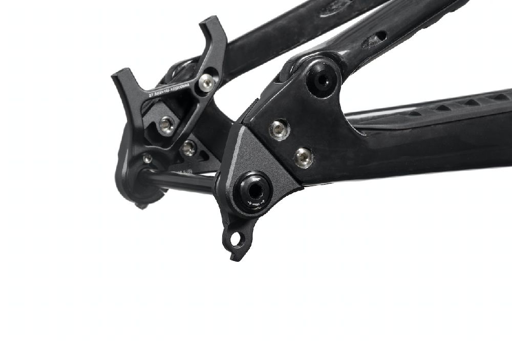 Wheel size configurations changes are achieved via modular dropouts. Meaningful geometry and weight bias adjustment are also made via 27.5" +10mm, 27.5" -10mm, and 29" +10mm dropouts. Giving riders the option to customize weight bias and handling characteristics to suit riding style or terrain types. 200mm direct brake mount included as standard. Framekits are sold with MX and 29" dropouts.